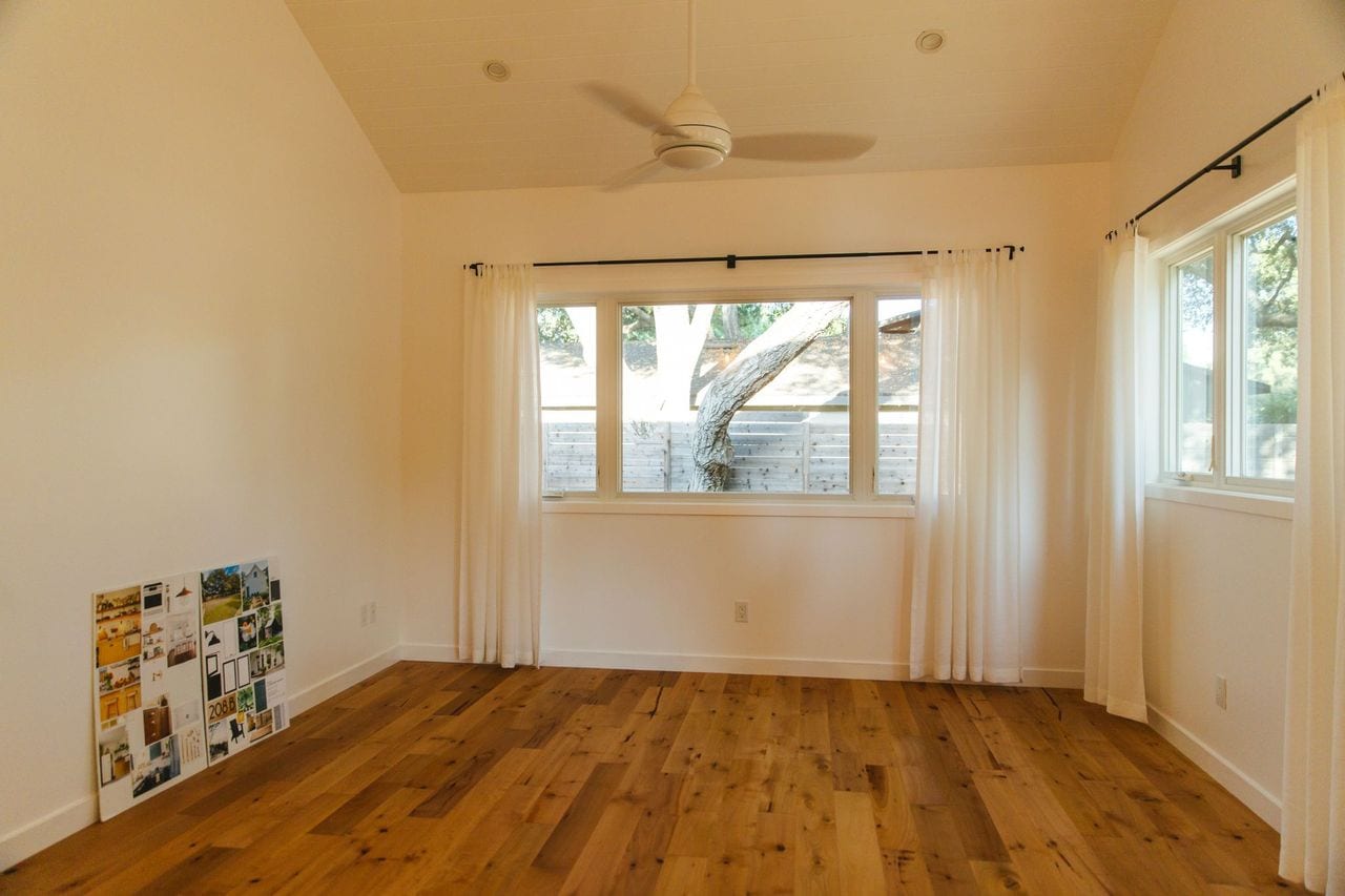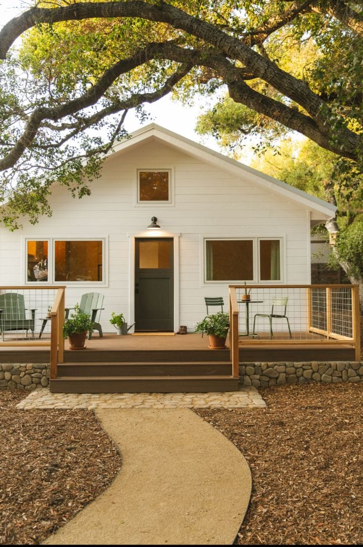 The Owlet Cottage is a 600sf ADU built adjacent to the property’s main house. Named after the native screech owls that have been nesting on the property for years, this home was designed with an open floor plan and expansive windows to take in the majestic Oaks surrounding the cottage. A large deck extends the living space to the outside, connecting the interior with its natural surroundings.